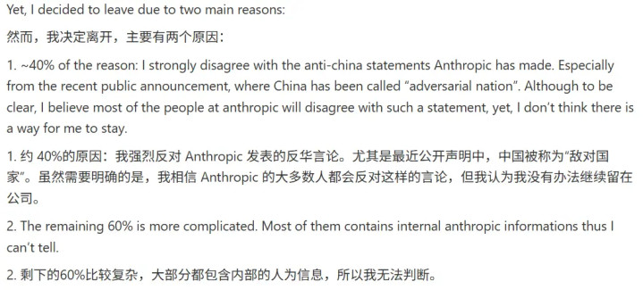 而他此次之所以选择离开Anthropic,主要有两个方面的原因: